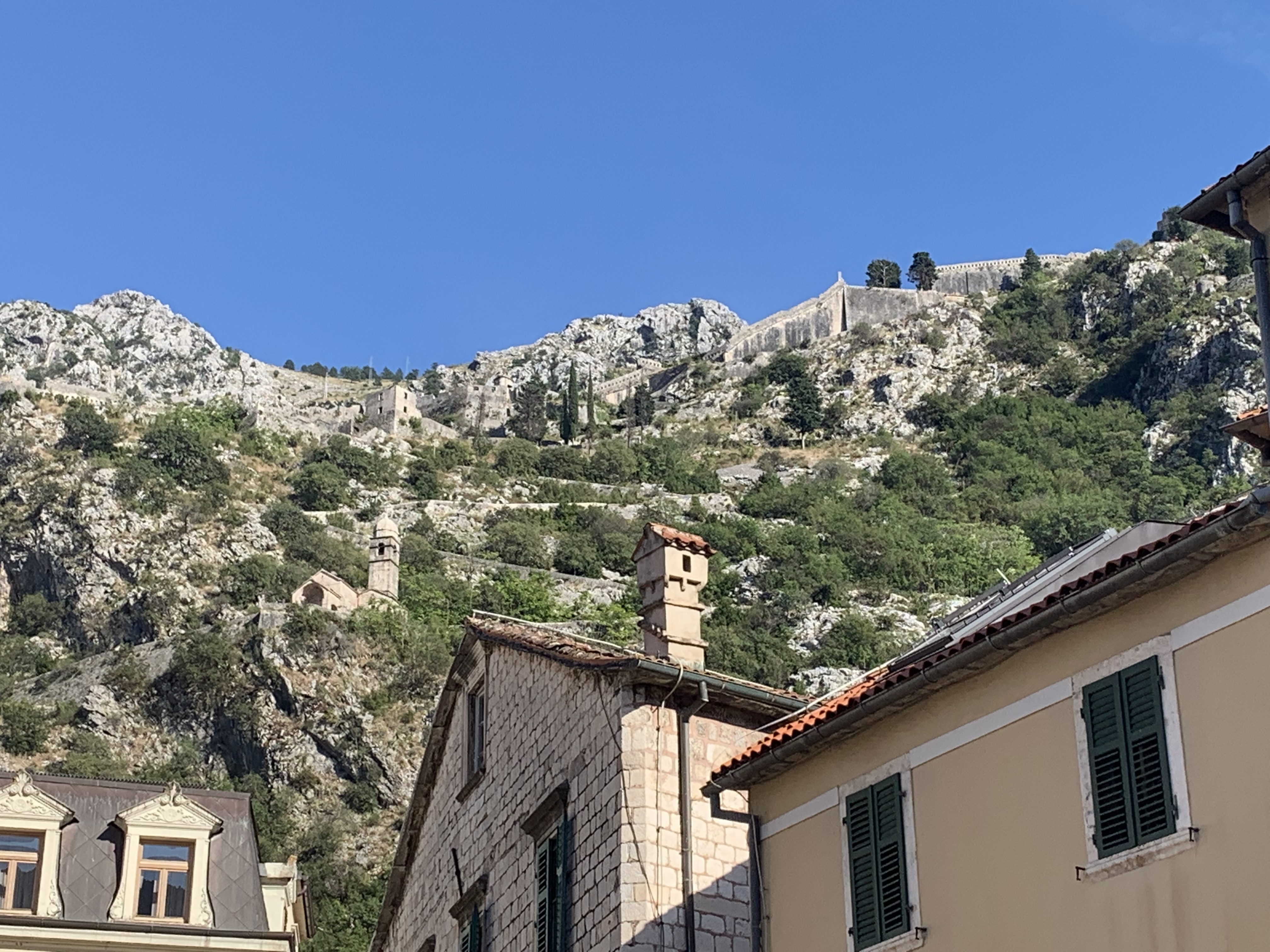 Kotor has a city wall from the late 14th / early 15th century. It was an impressive feat as the wall goes around the edge of the mountain and down to the bay. Defence of the bay was required to protect the shipping industry they had at the time and defend the area from the Ottoman’s who were inland. It costs 8 Euro’s to walk the wall and is apparently around 25 minutes to walk up – though it looks like it would take much longer, given how steep and high it is!