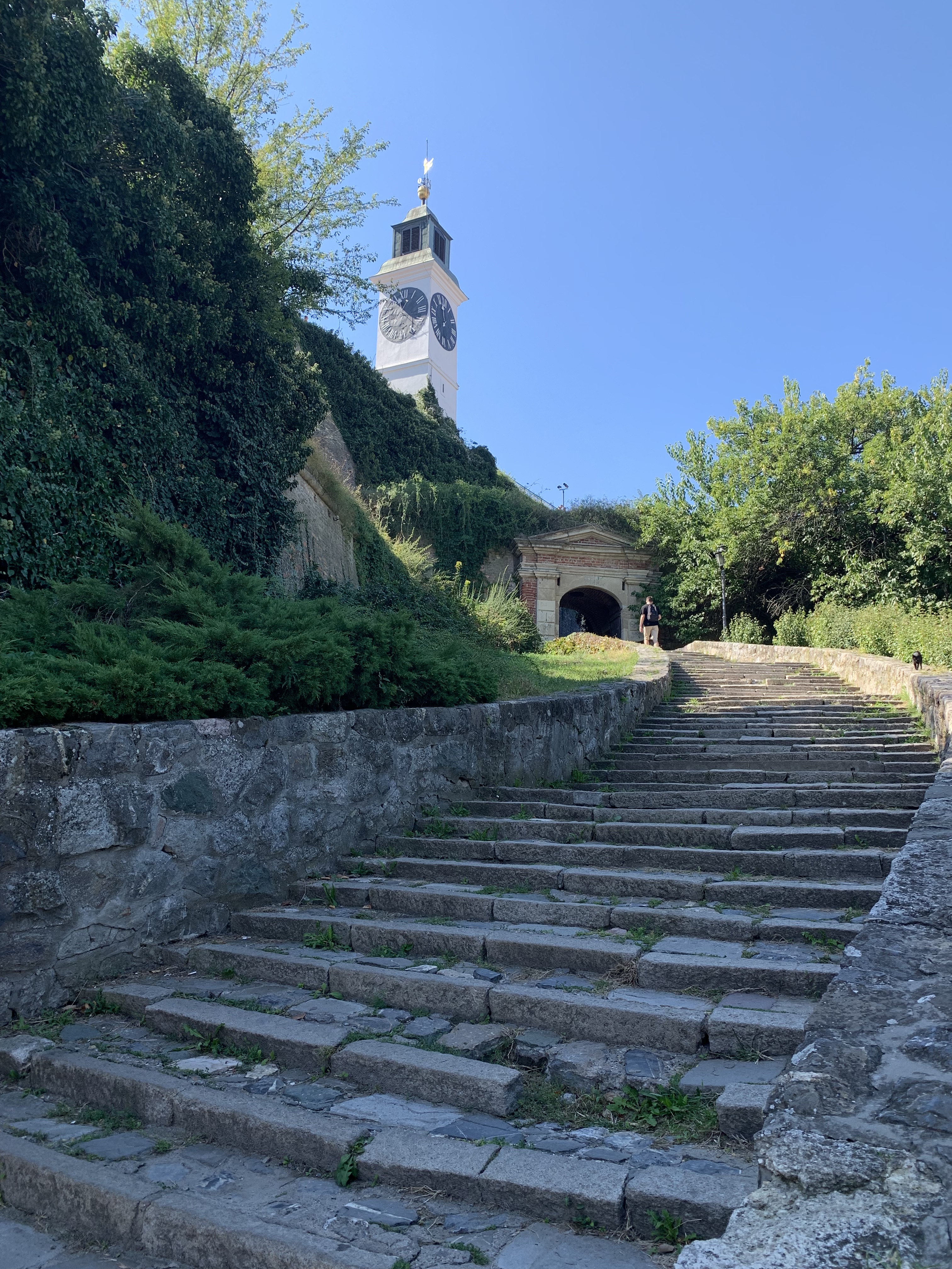 Petrovaradin fortress dates back to the 17th / 18th century and sits by the Danube River. The location gives good visibility in all directions – great for defence, with an iconic clock tower and a complex network of tunnels. It’s some 240 steps up to the top – but worth it for the spectacular view. Across the river is Stari Grad – the old quarter.
