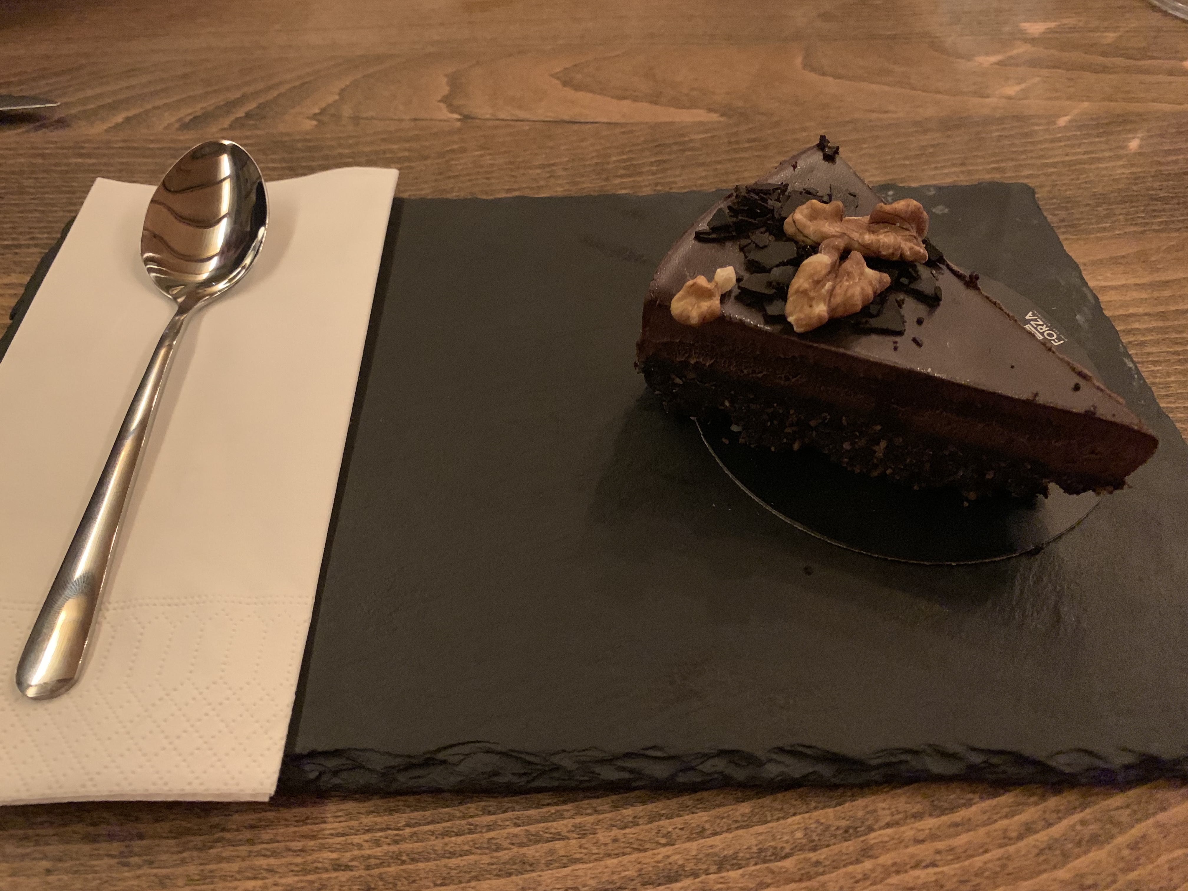 I had the tuna steak which was superb and cooked to perfection. If you don’t like it rare I suggest you tell them when you order. They even had a selection of vegan desserts (well two but it’s the first I’ve seen in The Balkan’s); I had the raw chocolate cake which was also amazing!