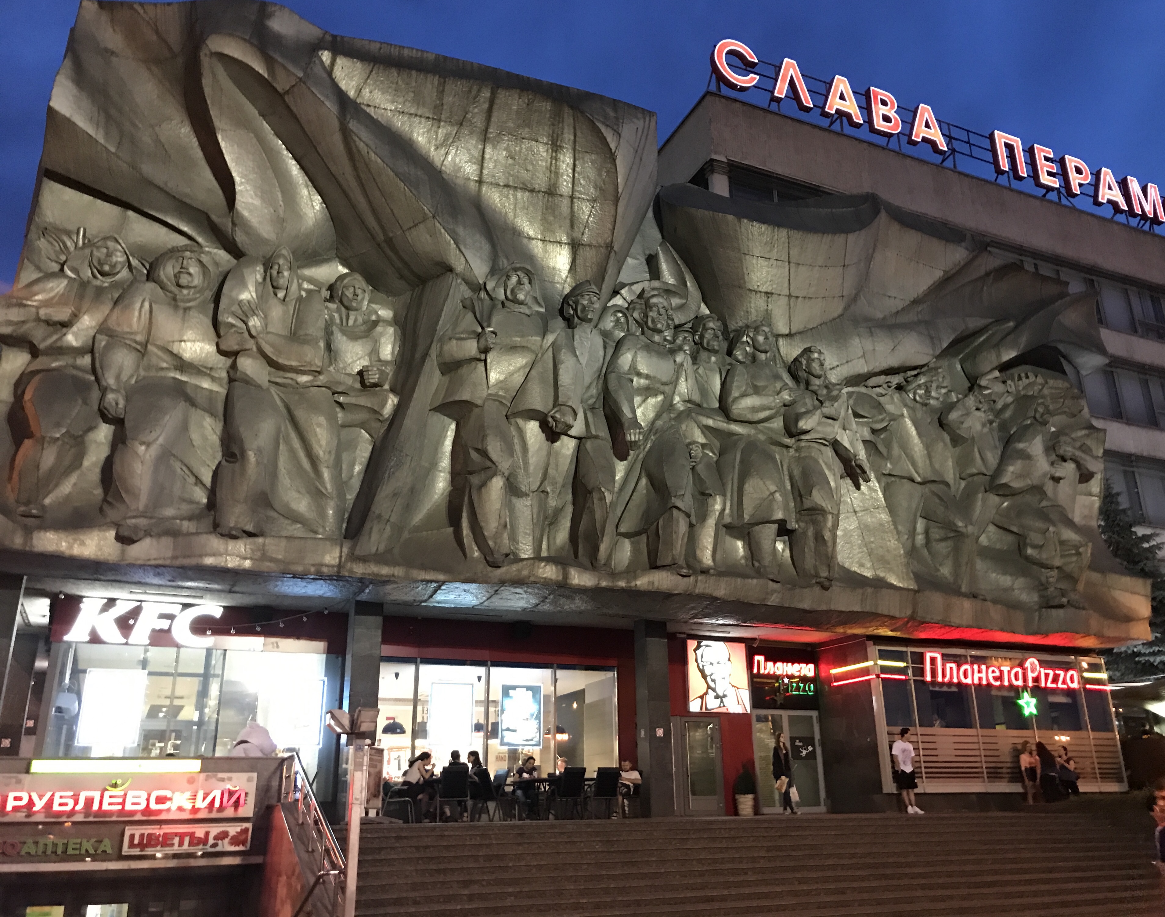 The Soviet feel of the city is still there, and very evident, despite this example being above KFC!