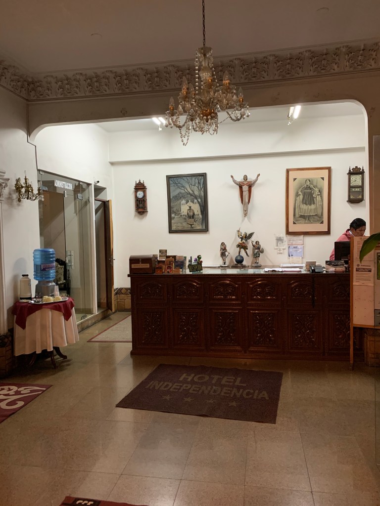 I stayed in The Independencia Hotel, a great location near the Main Square. The shower was amazing! I needed a hot shower as we are now at a mere 20 odd degree Celsius! Very cold after the humidity of Brazil. Elevation is 2400m above sea level.